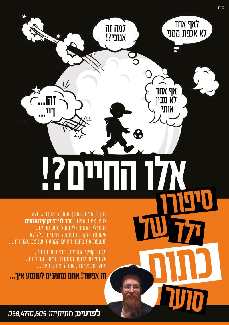 הרב לוי יצחק שיחי' קירשנזפט, משפיע בישיבת חנוך לנער, חושף את סיפורו המטלטל משחר ילדותו בגוש קטיף, שם החיים היו מלאים בפחדים, פיגועים, מוות של אנשים קרובים, ולבסוף הפינוי אל הלא נודע . .