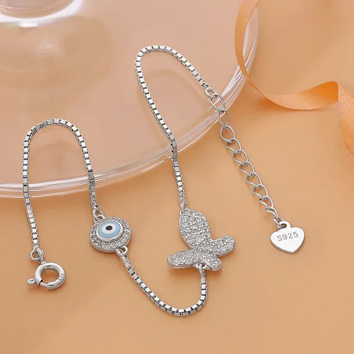 This Silver Evil Eye Bracelet combines classic protection with a sophisticated sterling silver design. Perfect as a thoughtful present or for everyday use.