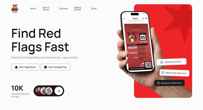 The first dating safety app that enhances your dating life through self-improvement. Detect red flags in your partners before it's too late. Cray includes the CrayScore, SchemerScore, CatfishCheck, and Background Checks all in one place. The app is free and helps users identify red flags while also explaining why these issues matter for relationship happiness and health.
