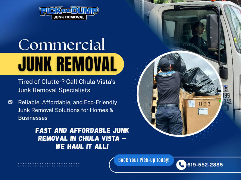 SAN DIEGO METRO'S COMPLETE JUNK REMOVAL SERVICE. We make clearing the junk and clutter from your Metro San Diego home or business a breeze. Our professional junk haulers arrive on time prepared to attend to every detail quickly and safely while you sit back and relax. Pick And Dump is the local junk removal company that goes above and beyond to provide you with a pleasant junk removal experience whether we pick up a single item or provide you with an entire property clean-out. We offer free no-obligation quotes with no surprises and excellent pricing. Just send us pictures of video of your unwanted stuff and get a free estimate in minutes!
