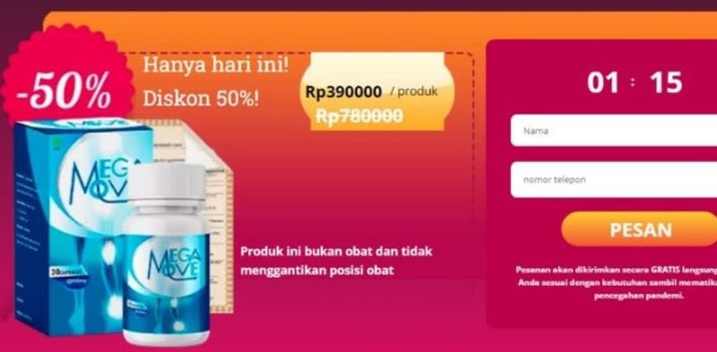 Megamove adalah Kapsul alami yang meredakan kekakuan dan nyeri pada persendian. Selain meredakan nyeri, bahan tumbuhan dalam kapsul telah terbukti sangat bermanfaat dalam mengobati osteochondrosis dan arthrosis. Di Indonesia Kapsul tersedia dengan harga yang sangat terjangkau. Setelah meminumnya, pengguna melaporkan merasakan keringanan langsung dari rasa sakit dan nyeri pada persendian dan otot mereka. Postingan di forum Megamove sangat positif. Ulasan dari pengguna menunjukkan bahwa produk tersebut memenuhi harapan.