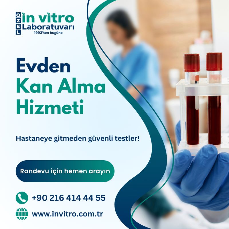 Invitro Laboratuvar, Sağlık Bakanlığı tarafından akredite, güvenilir tıbbi test hizmetleri sunar. Hormon testi, biyokimya testi, alerji testi, vitamin testi, kanser ve hastalık tarama testleri ile erken teşhis sağlar. Evden kan alma ve hızlı sonuç hizmetiyle kolay, konforlu ve güvenli laboratuvar deneyimi sunar.