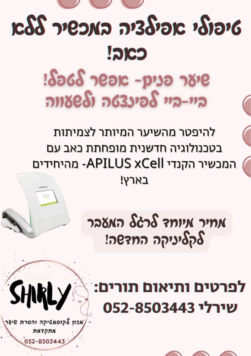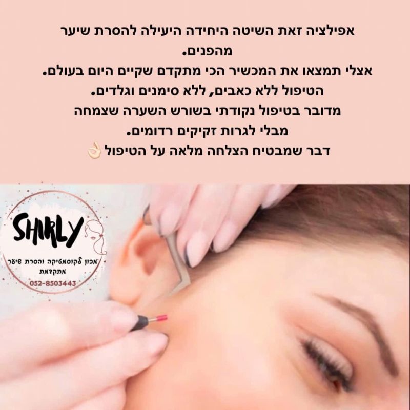 שירלי פיינגולד –בעלת דיפלומות בהסרת שיער לצמיתות ע"י אפילציה. העבודה מקצועית ויסודית ביותר, בסטריליות גבוהה.