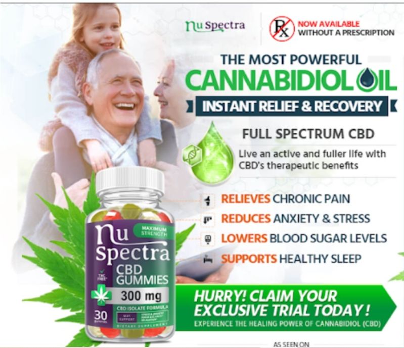 Nu Spectrum CBD Gummies are tiny chewy edible snacks made with cannabidiol (CBD) oil. Although these delicious snacks look candy-like, CBD Gummies offer several benefits for health. They are made from hemp that is organically grown Gummies are entirely natural and are free of chemical sweeteners or pesticides. CBD Gummies offer a range of health benefits due to the mix of CBD along with various other ingredients that are natural. Cannabidiol works in the body's endocannabinoid systems, offering a variety of relief from stress, pain, and anxiety. Research is constantly being conducted to determine the therapeutic benefits that CBD products offer.